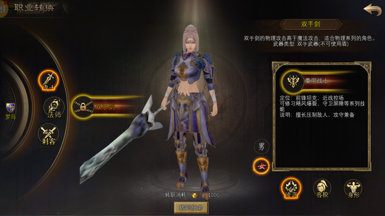 重点说在前面 1、转换后您的种族、性别、容貌均会改变!所以请选择好你的新形象~! 2、当前穿戴装备会自动转换为所选职业匹配的装备(等级、品质、强化、精炼、改造属性保留),如果不想转换装备,请将装备放入背包。 3、转换后,将重置和返还所有技能点。 当角色等级突破至70级,「罗马」资料片专属转职通道正式开启! 只需点击界面「前往了解」,即可自动寻路至长安引导员处,开启你的跨越东西方的职业蜕变之旅。 与NPC完成基础对话后再次交互,即可进入职业转换界面——本次抢先开放战士(双手剑)、法师(法杖)、刺客(匕首)三大罗马职业,每种职业都将以独特战斗风格重塑你的丝路冒险。 首次转职需完成对应职业的专属任务,核心围绕武器锻造展开:从收集矿石到淬炼神兵,你将亲自体验罗马兵器的诞生过程。以战士转职为例,只需通过打怪掉落6个系列任务材料(每个环节100个),最终前往长安引导员即可解锁双手剑使用权。后续若需切换已解锁职业,无需重复跑任务。 法师与刺客的转职流程与战士一致,均需完成6个支线任务解锁对应武器。 无论是法杖的元素共鸣仪式,还是匕首的暗影淬毒工艺,都将为你揭开罗马职业的独特魅力。 高效转职小贴士: 1、任务材料支持组队共享,建议与目标职业一致的队友组队刷怪,效率翻倍; 2、时间充裕时可完成多职业转职任务,为后续自由切换职业预留空间; 3、不同职业材料互不通用,组队前请确认队友目标职业是否一致! 注意:长安引导员转职入口将长期开放,如若不喜欢罗马职业,还可以再转换回大唐哦!